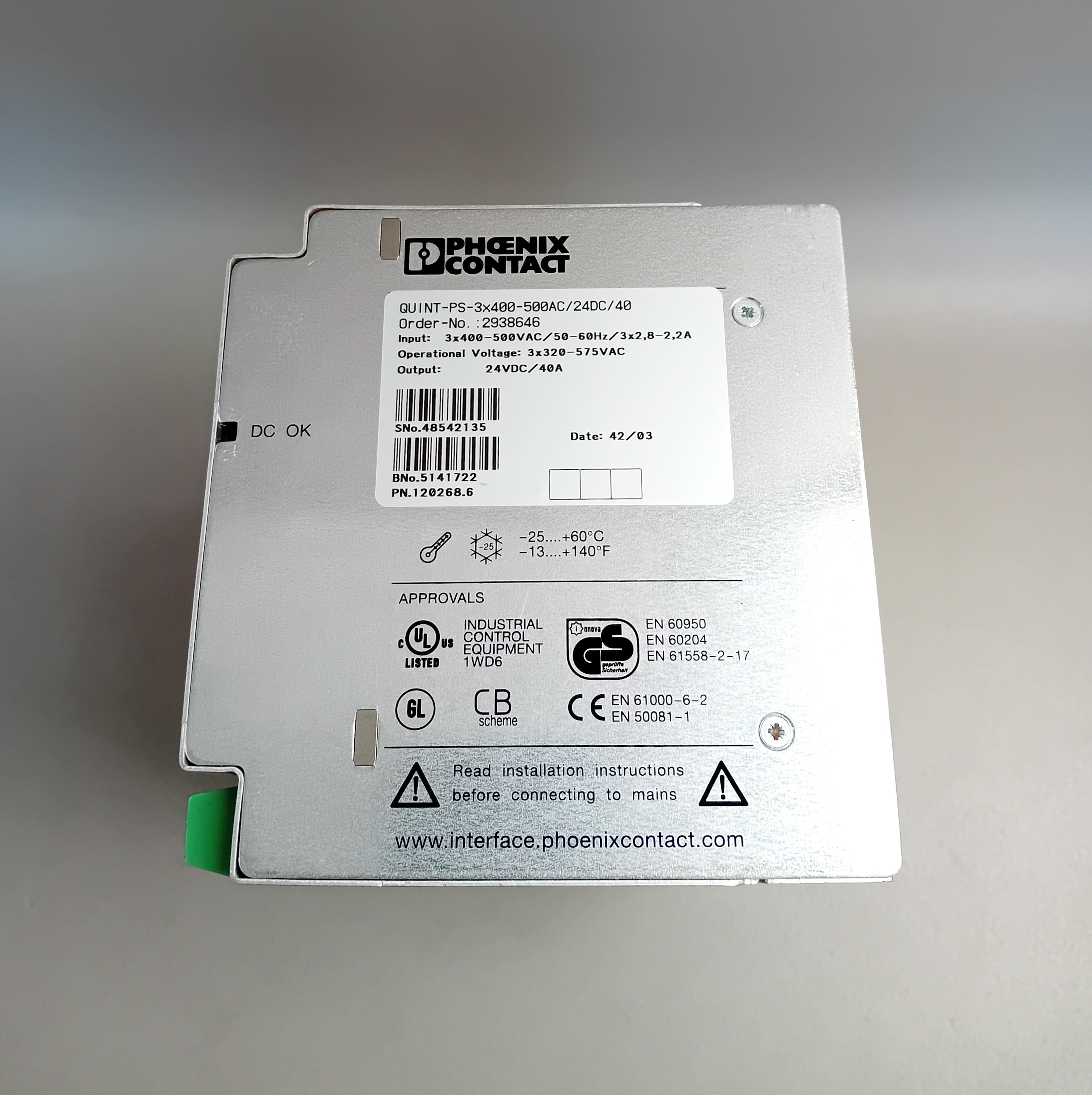 Phoenix Contact 2938646 QUINT-PS-3×400-500AC/24DC/40