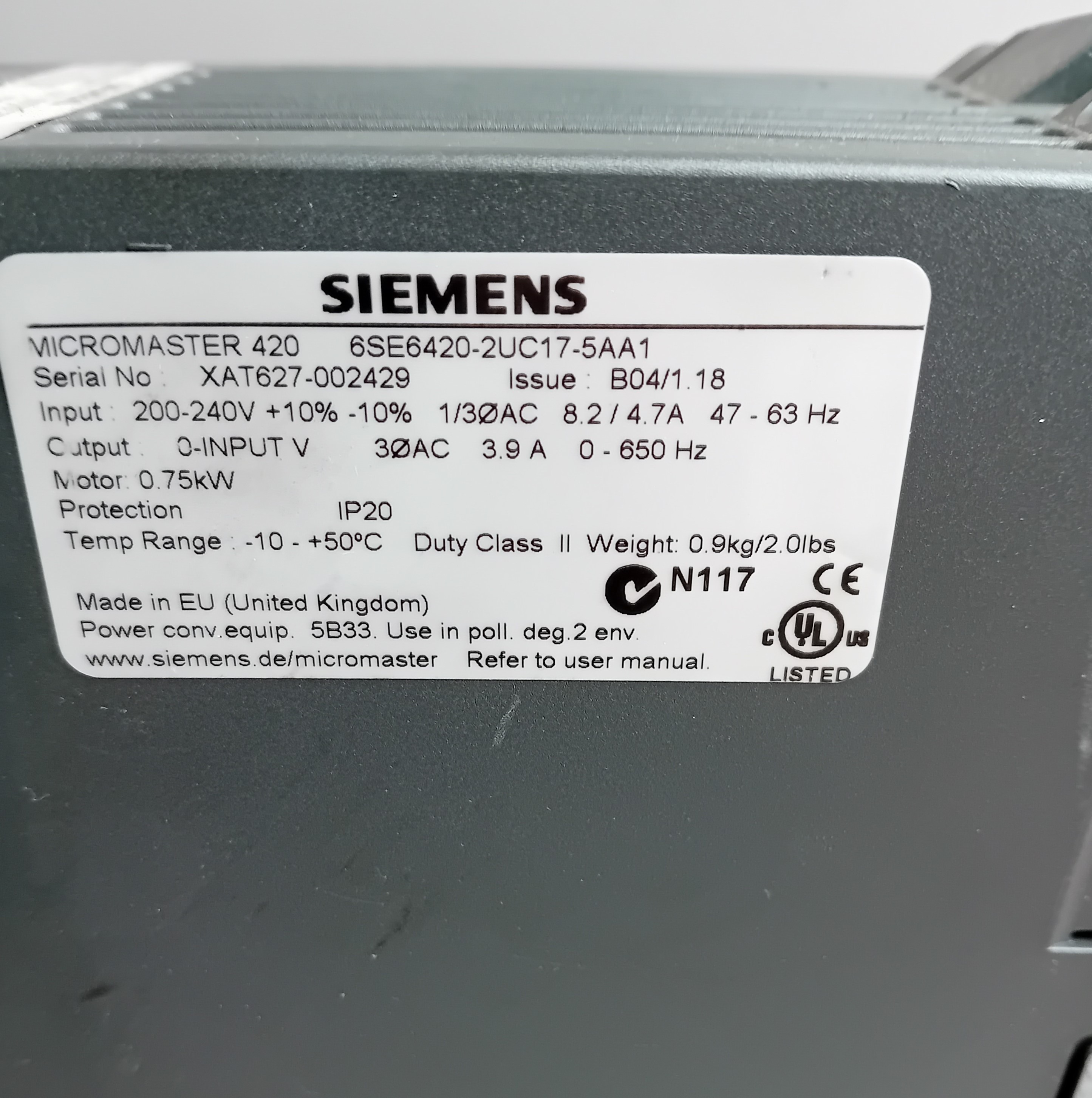 Siemens 6SE6420-2UD17-5AA0 + 6SE6400-0BP00-0AA1